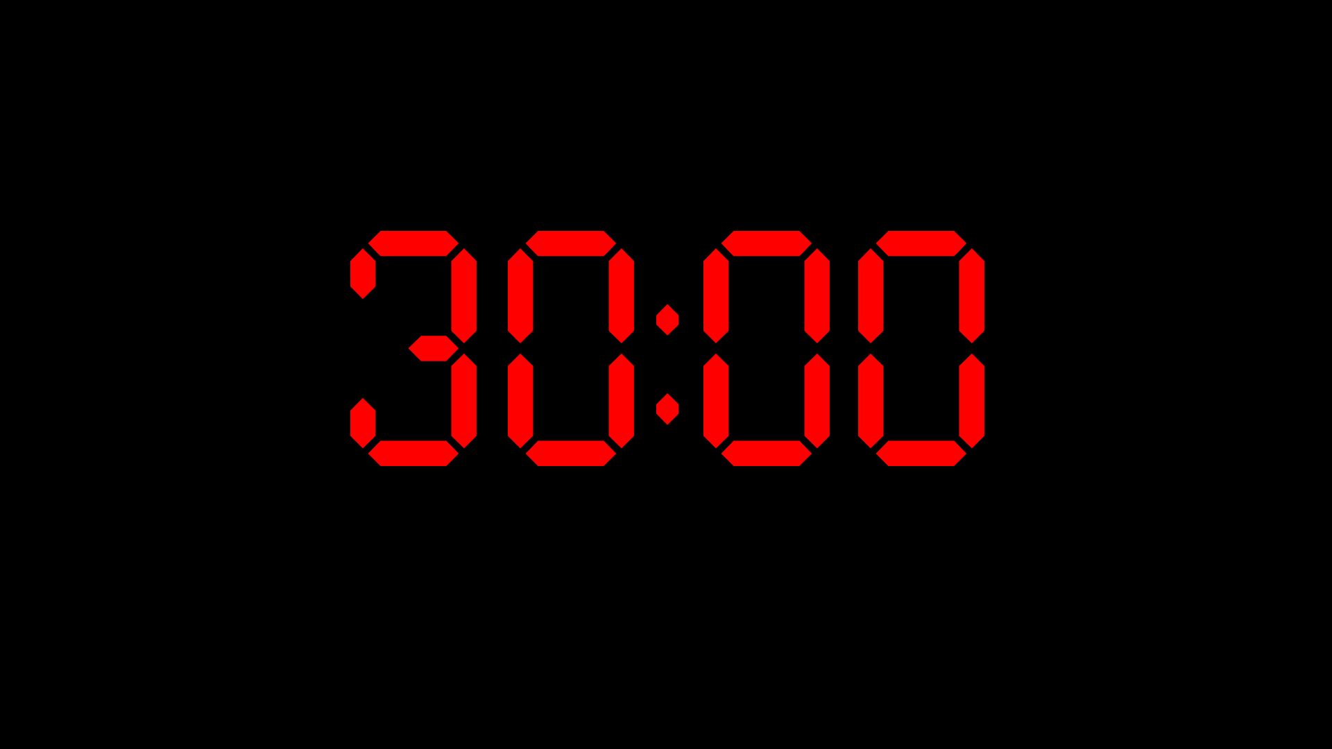 This free online timer is a simple, but techie, 30 minutes timer features a black 16 segment LCD on a simple white background.